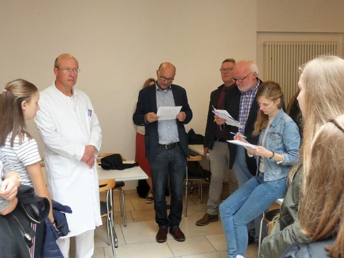 Vielleicht sogar mehr, als den Schüler selbst beim Malen bewusst war. Das bewundert Martin Feltes und hebt die Eigenständigkeit der Arbeiten und die individuelle Umsetzung der Themenideen hervor: „Es steckt vieles von den Künstlern drin. Jeder hat hier sein Ding gemacht.“Möglich machten diese Ausstellung im Krankenhaus Dr. Martin Reuter, Chefarzt der Unfallchirurgie, und Martina Reuter, Mitglied im Vorstand des Fördervereins.
