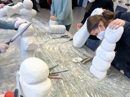 Im Projekt „Kopf & Körper abstrakt gedacht – Skulpturen aus Porenbeton“ arbeiteten die Schülerinnen und Schüler mit Hammer, Meißel, Sägen und Feilen. Aus Ytong-Blöcken entwickelten sie Schritt für Schritt abstrakte Darstellungen von Köpfen und Körpern.