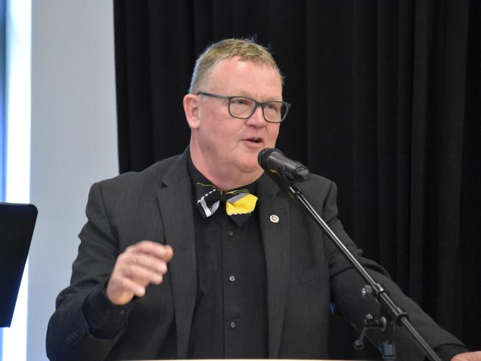 Schulleiter Andreas Weber trat dann zu seiner letzten Abiturrede ans Rednerpult. Den Versuch, diese mit ChatGPT zu gestalten, wertete er als insgesamt "wertvoll und interessant". Allerdings werde so ein guter, aber belangloser Text der Einzigartigkeit des Jahrgangs nicht gerecht. In seiner Ansprache nahm er den Begriff der Heimat in den Blick, den man eigentlich im Plural sehen müsse: "Heimaten".
