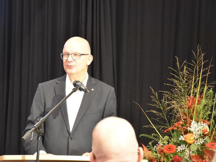 Schulleiter Hartmut Drees betonte diese Dimensionen in seiner Ansprache. "Das Haus überzeugt durch Licht, viel Raum und die Möglichkeit zur Begegnung." Er dankte dem Schulträger des Offizialats Vechta, vertreten durch Weihbischof Wilfried Theising, und dem Landkreis, vertreten durch den Landrat Johann Wimberg, für ihre Unterstützung und verwies darauf, dass "Zukunft wächst, wo Vertrauen gebaut wird", was hier wörtlich und metaphorisch zu verstehen ist. Nicht unbemerkt blieb ihm die wachsende Freude bei den Schülerinnen und Schülern, wie sie mit zunehmenden Baufortschritt immer mehr Ansprüche auf "Einzug" in das neue Gebäude stellten.