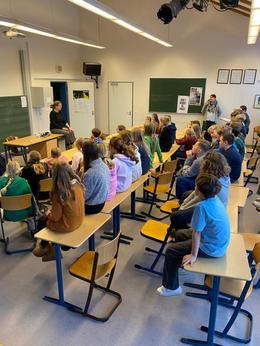 Im Anschluss ging es in den "San-Rafael"-Raum, der nicht umsonst so heißt: Die Schule unterstützt seit über 20 Jahren ein Straßenkinder-Projekt in Honduras. Im Hogar San Rafael, wird (zumeist Jungen) ein Dach über dem Kopf und eine schulische Grundausbildung geboten. Darüber wurden die jungen Schülerinnen und Schüler durch Fotos informiert, die Nele Bahlmann und Regine Bröring als Leiterinnen des Projekts anschaulich erläuterten.