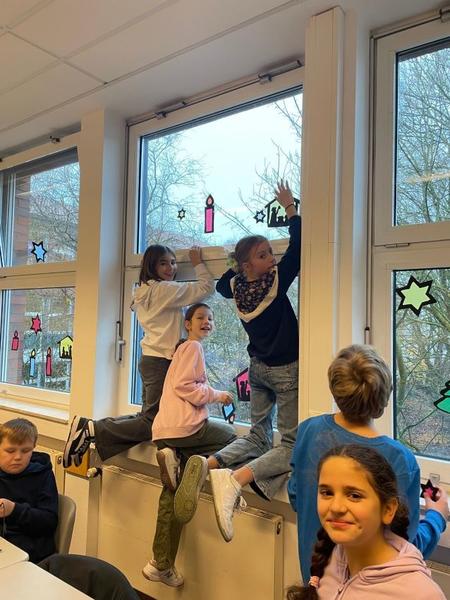 Immer Ende November herrscht das kreative Chaos in den Klassenräumen der Jahrgänge 5. Mit Schere, Tonpapier, Klebestreifen und Transparentfolie bewaffnet kreieren die neuen ULFen adventliche Motive, die dann im Klassenraum aufgehängt werden. So auch in diesem Jahr. Am Start waren die Klassenlehrkräfte Frau von Dohm, Frau Schade, Frau Wessels und Herr Ketteler.