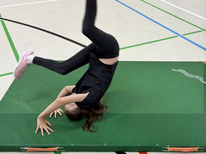Insgesamt 16 Kinder standen auf der Platte und wurden von Slawka Jezierska und Leonie Zeqo, Schülerin in Jahrgang 12 und begeisterte Handballerin, trainiert. In zahlreichen unterschiedlichen Spielformen wurde am Handballspiel gefeilt. Koordination, Schnelligkeit, Kraft, Übersicht, Wurftechnik - alles war dabei. Die ehemalige polnische Nationalspielerin konnte ihre ganze Erfahrung einbringen und vor allem den Spaß am Spiel vermitteln.