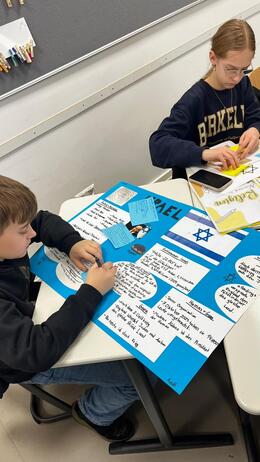 Im Rahmen des Religionsunterrichts beschäftigte sich die Klasse 6b mit ihrer Lehrerin Frau Lucassen mit der Religion und Geschichte des Judentums. Zu unterschiedlichen Aspekten wurden ansprechende und informative Plakate gestaltet, die zentrale Feste und Symbole erklären. Auch der Holocaust wurde thematisiert.