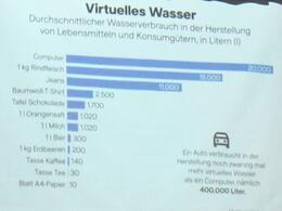 Weißt du, wieviel Trinkwasser benötigt wird, um dein Tablett oder deinen Computer zu produzieren? - Es sind rund 20000 Liter. Dramatische Zahlen, wenn man sich noch vor Augen führt, wie gedankenlos wir mit unseren elektrischen Geräten umgehen und wie hoch der Verschleiß ist. Dabei ist Wasse die wichtigste Ressource der Welt.