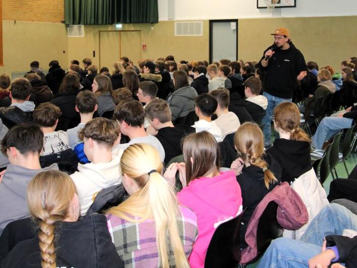 Der Hamburger Verein Mulitvision hat es sich auf die Fahne geschrieben, Aufklärungsarbeit bei verschiedenen ökologischen Themen wie Energiewende, Nachhaltigkeit, Klimawandel zu leisten. Im Mittelpunkt des Dialogs, der in der Sporthalle mit jeweils rund 150 Schülerinnen und Schülern stattfand, stand das Thema Wasser in vielen Facetten. Die Schülerinnen und Schüler der Jahrgänge 7 bis 12 wurden dabei zum Nachdenken über ihr eigenes Handeln angeregt.