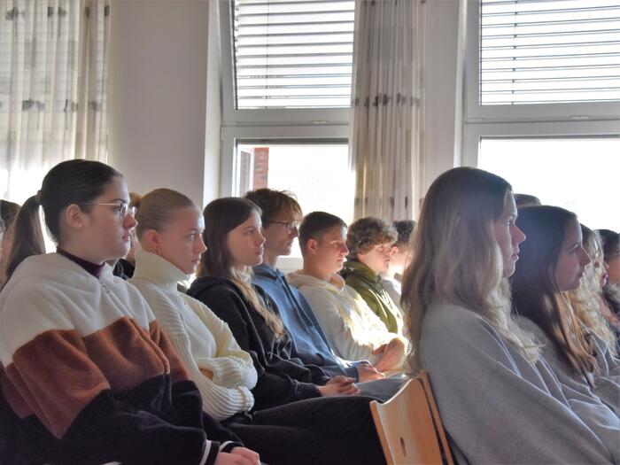 Die Schüler des Jahrgangs 11 hatten die Möglichkeit, Fragen zu stellen, die offen und ehrlich beantwortet wurden von einer Frau, die erstaunlichen Lebensmut und -freude beweist.