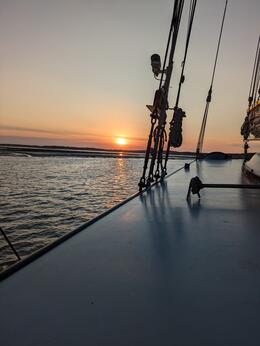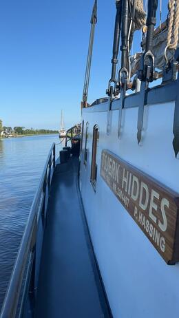 Es war einmal ein warmer Sonntagmittag, als unsere Segelfahrt mit guter Laune und strahlendem Sonnenschein begann. Die gesammelte Crew erschien tatsächlich pünktlich und kurz darauf ging es mit voller Fahrt voraus zu unserem Ziel, unserem Segelschiff, der "Tsjerk Hiddes". Die folgenden Tage waren von einem starken Gemeinschaftsgefühl geprägt. Egal, ob beim gemeinsamen Segeln, Entspannen oder bei besonderen Herausforderungen – die Crew hielt stets zusammen.