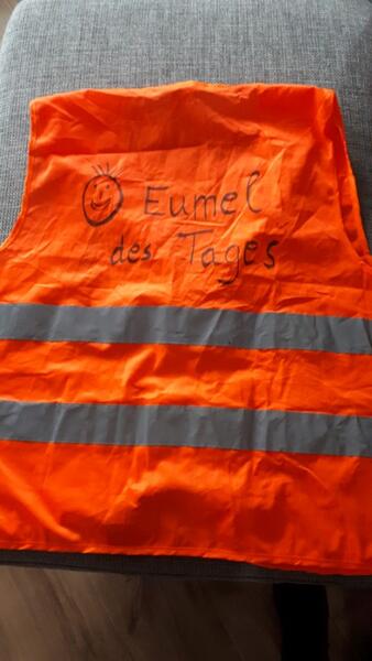 gekürt. Dieser durfte dann die nächsten 24 Stunden eine orange Warnweste, mit der Aufschrift: „Eumel des Tages“ tragen. Dabei wurde von den witzigsten Ereignissen aus