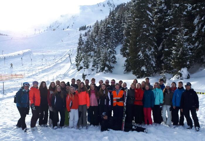 Der nächste Morgen startete mit einer holprigen und kurvigen Busfahrt, nach der bereits den ersten schlecht war. Doch der Großteil wartete ungeduldig darauf, dass es endlich losging, allerdings musste sich die Gruppe zuvor erst noch erwärmen. Diese Phase wurde im Laufe der Woche der Gruppe zum Verhängnis, denn bestimmte Lehrpersonen hatten besonders großen Spaß an dieser Phase. Dann konnte es endlich losgehen und die verschiedene Kleingruppen meisterten ihre ersten Pisten. Alle lernten schnell und machten große Fortschritte, auch wenn es immer wieder zu Auseinandersetzungen mit dem Ankerlift kam und die ein oder andere Hose es nicht bis zum Ende der Skifahrt schaffte. Als es dann zu dem Tag kam, an dem zum ersten Mal die schwarze Piste gefahren werden durfte, stellte sich natürlich die Frage, da keiner ein Schwarzfahrer sein wollte, ob man für das Befahren der schwarzen Piste nicht Geld bezahlen müsste (natürlich nicht).