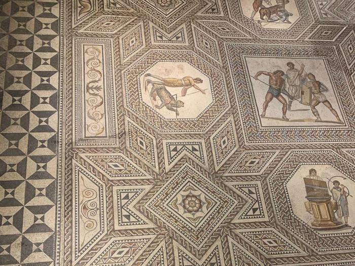 Am Mittwoch - ein Tag ohne trockene Minute - sind wird mit dem Bus zunächst nach Nennig gefahren, um uns dort den größten heute erhaltenen Mosaikfußboden nördlich der Alpen anzuschauen. Wir hätten nicht gedacht, dass dieser so beeindruckend sein könne. Im Anschluss stand die größte gänzlich restaurierte Römervilla der Welt in Borg auf unserem Programm, bevor wir den Ausblick auf die imposante Saarschleife genießen konnten.