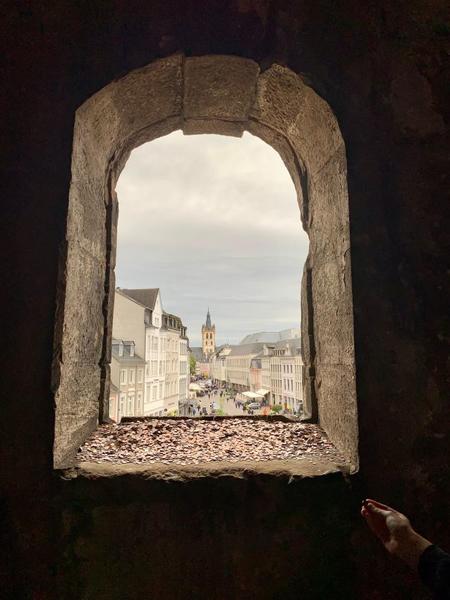 Am Morgen des 22.9.25 haben wir uns um 7 Uhr am Bahnhof in Cloppi getroffen, um uns auf den Weg nach Trier zu machen. Insgesamt mussten wir dreimal umsteigen, in Osnabrück, Köln und Koblenz. Um 15:40 Uhr und nach einigen Herausforderungen konnten wir endlich die frische, kühle Luft Triers schnuppern. Eine halbe Stunde Fußweg zur Jugendherberge wartete noch auf uns. Dort haben wir unsere Zimmer bezogen, Spaghetti Bolognese oder vegetarisch gegessen und den Abend mit Spielen ausklingen lassen.