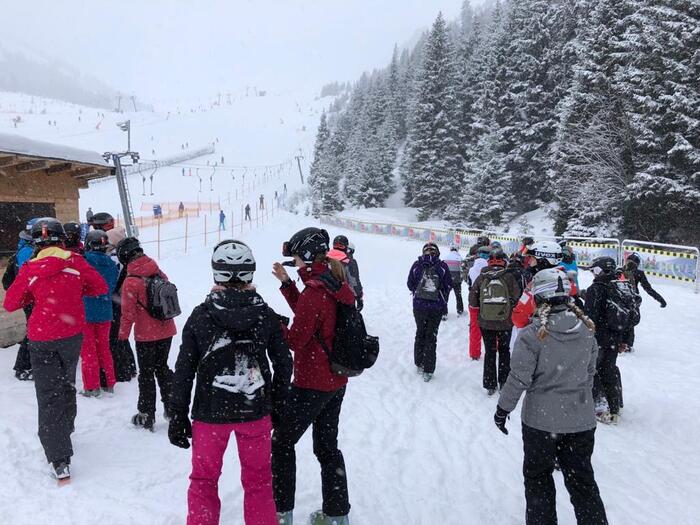 Endlich stand der große Tag an: In der Nacht von Freitag, den 11. Januar auf Samstag, den 12. Januar, begann die große Reise in das Zillertal für 22 Schülerinnen und Schüler des Skikurses von Herrn Oevermann sowie 10 Teilnehmerinnen und Teilnehmer des P5-Kurses von Frau Lucassen. Begleitet wurde dieses Team von den „Star-Coaches“ Herrn Suttrup und Frau Kolbeck. Nach einer anstrengenden Busfahrt und der Skiausleihe erreichten alle mehr oder weniger ausgeschlafen die Unterkunft in Uderns. Das Personal des Hotels Erzherzog Johann begrüßte alle sehr freundlich, allerdings erreichte die Lehrerinnen und Lehrer die Nachricht, dass die Vorbewohner des Hotels die Zimmer in solch einem Zustand verließen, dass die Aufräumarbeiten noch andauern würden. Das bedeutete Wartezeit, doch nach einigen Einkäufen, vielen Kartenspielrunden und ein paar Schläfchen konnten schließlich alle Zimmer bezogen werden. Nach einem ausgiebigen Abendessen gingen alle gespannt ins Bett und freuten sich auf den nächsten Morgen: den ersten Skitag.