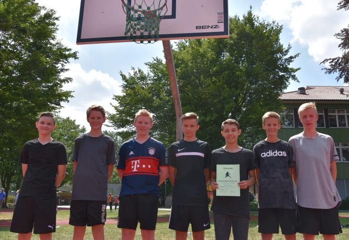 Bei den Jungen spielten acht Teams in zwei Gruppen. Während die 8a frei von Punktverlusten die Gruppe überstand und die erste Mannschaft der 8a der Marienschule hinter sich ließ, hatte die 8b nur aufgrund der schlechteren Korbdifferenz, aber punktgleich, hinter der zweiten Mannschaft der 8a der Marienschule das Nachsehen. Nach zwei knappen Halbfinals, die beide nur mit einem Korb Differenz entschieden wurden, standen sich im Finale die 8a der Liebfrauenschule und die erste Mannschaft der Marienschule gegenüber. Diese Begegnung gab es schon in der Gruppenphase und endete dort mit mit 8:4 für die Liebfrauenschule.