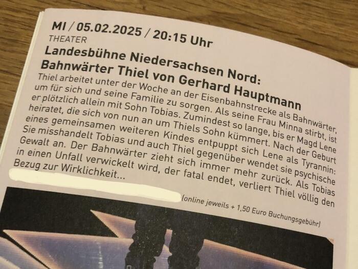 Die beiden Leistungskurse Deutsch des Jahrgangs 13 nutzten kurz vor den schriftlichen Abiturprüfungen vor Ort im Kulturbahnhof die Möglichkeit, um Gerhart Hauptmanns Novelle „Bahnwärter Thiel“ - verpflichtende Lektüre im Abiturjahrgang 2025 - als Theaterinszenierung der Landesbühne Nord zu schauen.