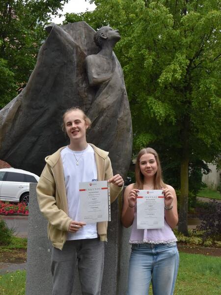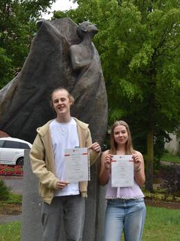 Mia-Lina Pfening und Jens-David Thoben erhielten jüngst ihre Urkunden für die Teilnahme beim Bundeswettbewerb Fremdsprache 2025 erhalten. Dabei erzielte Mia-Lina Pfening einen ausgezeichneten 3. Platz und Jens-David Thoben durfte sich sogar über einen 1. Platz freuen.