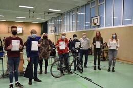 Unter der Aufsicht von Andrea Knorr und Christoph Ketteler sind dabei folgende Projekte an den Start gegangen und erreichten diese Platzierungen: „Sortieranlage für farbliches Sortieren“ (Theo Hennig, Andreas Otte, Steven Nty; Jugend forscht/Technik); „MixFix - Konstruktion und Programmierung eines Cocktailautomates“ (Kenneth Delgas, Benjamin Feldhaus, Patrick Kolbeck; Jugend forscht/Technik; 3. Platz); „Untersuchung des Aerosolengehalts der Atemluft in Klassenräumen“ (Johann Dinkgrefe, Aaron Kuper, Ben Meyer-Ohlendorf; Jugend forscht/Arbeitswelt; 3. Platz); „Ist Handystrahlung schädlich für Pflanzen?“ (Lars Sieverding, Felix Wennmann, Hannes Wessels; Schüler experimentieren/Arbeitswelt; 3. Platz); „Herstellung und Wirksamkeitsprüfung verschiedener Desinfektionsmittel“ (Lena Bührmann, Lea Tapken; Jugend forscht/Biologie; 3. Platz); „Bikecharge - ein mobiles Ladegerät“ (Jan Hackmann, Vipishanth Ravichandran; Jugend forscht/Technik; 2. Platz). Die Entwicklung eines Handyladegerätes fürs Fahrrad wurde zusätzlich mit dem Sonderpreis „Umwelttechnik“ gewürdigt.