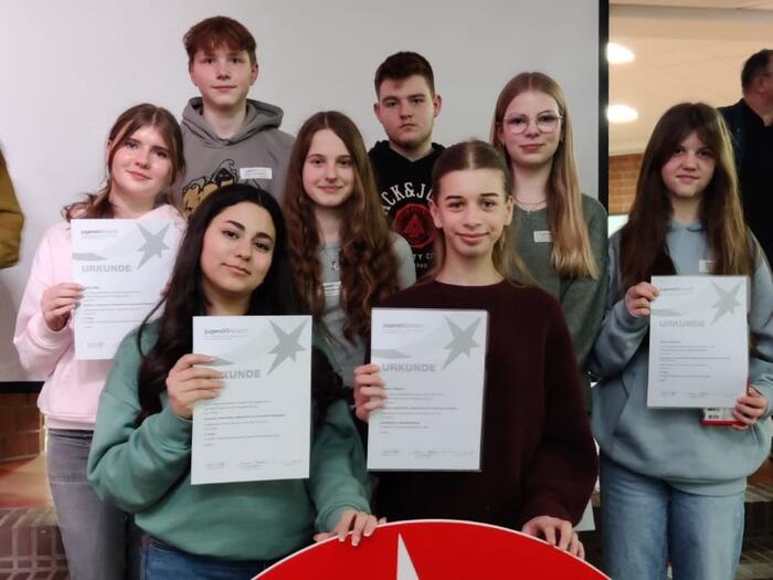 Gleich vier der fünf Gruppen der Liebfrauenschule Cloppenburg, die am 60. Regionalwettbewerb „Jugend forscht“ in Lingen am 20. Und 21.02.2025 teilnahmen, wurden mit Preisen geehrt. Die Themengebieten umfassten ein weites Feld von der ökologischen Hausdämmung bis zur Untersuchung der Beeinflussung verschiedener Lebensmittel auf die Konzentrationsfähigkeit. In einer Feierstunde am Freitag wurden die Preise überreicht. Zur Freude der Jungforscher war einer der Laudatoren auch der aus seinen Lernvideos zu mathematischen Themen bekannte Youtuber „Lehrer Schmidt“.