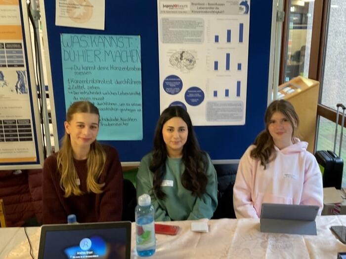 Glucose (vorhanden in zahlreichen Softdrinks), dunkle Schokolade oder Karotten? Beeinflussen diese Lebensmittel die Konzentrationsfähigkeit? Dieser Frage gingen Sophie Diedrich, Lin Ali und Emilia Otten nach. Die Jungforscherinnen führten an mehreren Probanden vor und kurz nach dem Verzehr der Lebensmittel sowie nach 30 Minuten einen Konzentrationstest durch und kamen nach einer statistischen Auswertung zu dem Ergebnis, dass Karotten und dunkle Schokolade die Konzentrationsfähigkeit am meisten steigern. Anhand ihrer Recherche erklären die Schülerinnen sich die Ergebnisse über verschiedene Inhaltsstoffe, die in Bezug auf die Konzentration unterschiedlich wirken. Der begeisternde Vortrag der Projektgruppe und die Möglichkeit der Durchführung der Testung vor Ort schienen die Juroren beeindruckt zu haben und belohnte die Gruppe gleich doppelt. Neben einem hervorragenden 2. Platz im Teilgebiet Biologie wurden die mit dem mit 75 € dotierten Sonderpreis Umwelt, gestiftet von der Bundesumweltstiftung, belohnt.