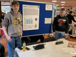 Tamme Westerhoff und Oskar Papenbrock untersuchten, ob Schweinespielzeug das Aggressionsverhalten von Schweinen positiv beeinflusst. Dafür setzten sie sich mehrfach in den Schweinstall und führten ein Protokoll über die besonderen Verhaltensweisen und die Nutzung der Spielzeuge in der Zeit. Sie kamen zu dem Ergebnis, dass auch Schweine spielen und dies ihr Aggressionsverhalten positiv beeinflusst. Man könnte mit einem Lächeln sagen: "Schweine sind auch nur Menschen."