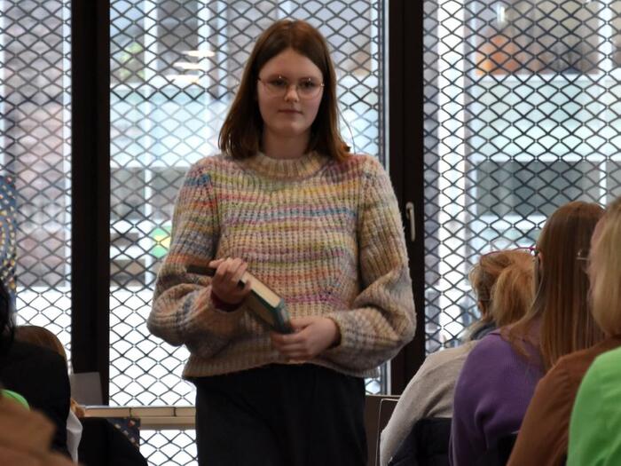 Letztlich kann Marie aber stolz sein. Ihr Vortrag war ausgezeichnet. Sie setzte ihre Stimme gekonnt ein, um den verschiedenen Figuren bei der wörtlichen Rede Leben einzuhauchen oder um die steigende Spannung deutlich zu machen. Sehr gut gemacht, Marie.