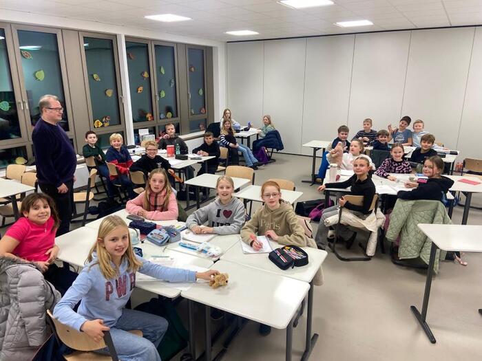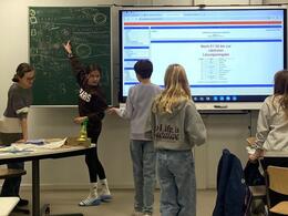 Zwischendurch durften sich die Mathe-Asse, die von der Fachgruppe Mathematik unter der Leitung von Christoph Ketteler betreut wurden, mit frisch zubereiteten Hot Dogs stärken. Das Julia-Haus war dabei der ideale Ort, um sich in den Kleingruppen in den Klassenräumen zurückzuziehen oder auf der Sitztreppe im Hauptflur Ideen auszutauschen.