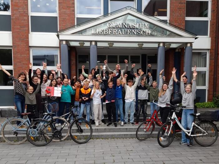 Die 6b konnte in den drei Wochen mit insgesamt 27 aktiven Radlern sage und schreibe über 10000 Kilometer "erradeln". Das sind in diesen drei Wochen 373,8 Kilometer pro Radler. Ein Wahnsinnsergebnis, das auch den Schulleiter stolz machte: "Bei Wind und Wetter in die Pedale zu treten, ist nicht immer ein Vergnügen. In diesem Fall war sicher auch viel Ehrgeiz und Teamgeist für die 6b ein Ansporn. Da wollte sich keiner in der Klasse hängenlassen. Das kann man am Ergebnis sehen."